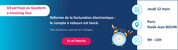 La réforme de la facturation électronique approche, ce qui impose aux directions financières d’anticiper leurs choix technologiques. Dans ce contexte, G4 s’associe à Quadient pour organiser une matinée exclusive du Quadient e-Invoicing Tour 2026, le 12 mars à Paris, au Stade Français Jean Bouin.